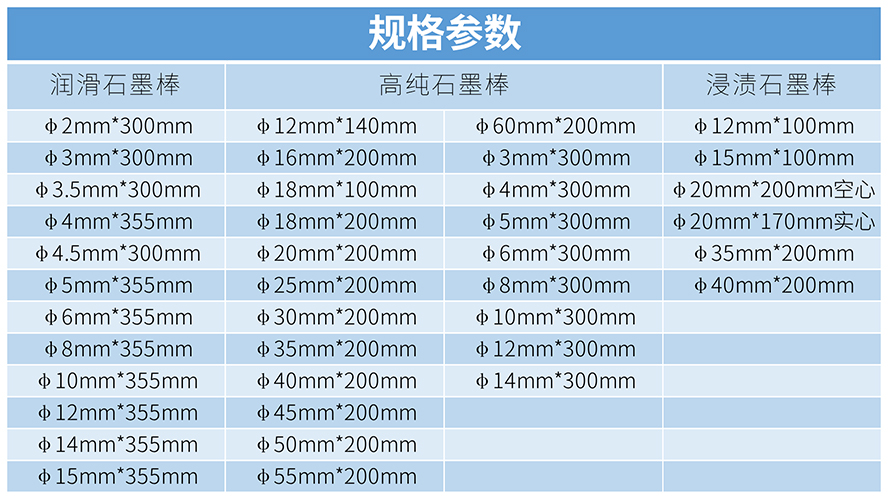 石墨棒常用于高溫真空爐的電熱體,最高使用溫度可達3000℃,在高溫下易于氧化,除真空外,只能在中性氣氛或還原性氣 氛中使用。它的熱膨脹系數較小,熱導率較大,電阻系數為(8~13)×10-6 Ω·m,加工性較SiC、 MoSi2棒好,耐高溫,耐極冷極熱性好,價格較便宜。